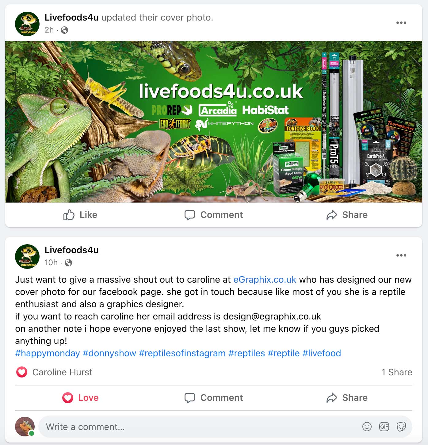 As an owner of 6 Bearded Dragons I had the pleasure of designing a full graphics suite for Livefoods4u.